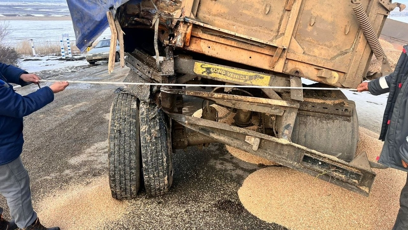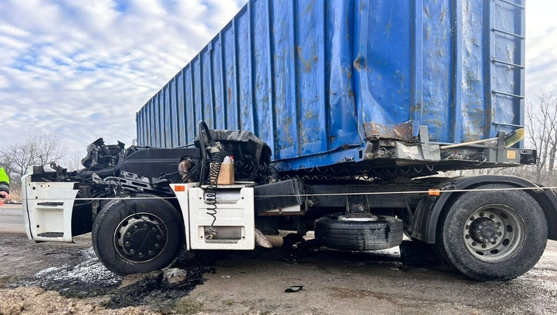 Водитель одного из КамАЗов, двигаясь в сторону Невинномысска, допустил столкновение с грузовым автомобилем той же марки. ДТП произошло в момент, когда машина впереди сбавила скорость для поворота направо. В результате аварии виновник происшествия получил серьёзные травмы: переломы рёбер, компрессионные переломы позвоночника и травму головы. Его доставили в больницу.